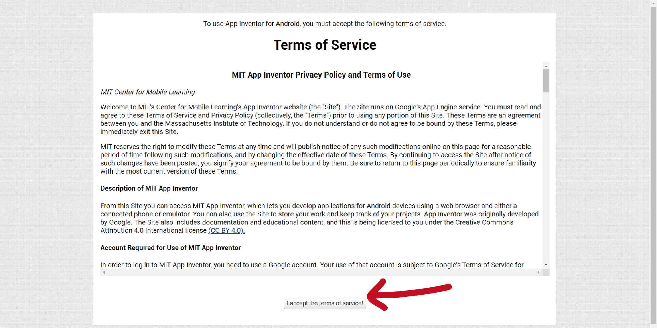 3. 第一次進入網站會有「服務條款」畫面,按「I accept the terms of service!」進入。