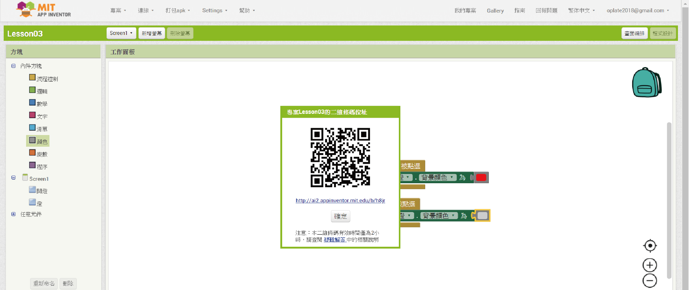 用「MIT AI2 Companion」或其他QR Code掃描程式都可以,掃描QR Code後就可以下載apk檔安裝。