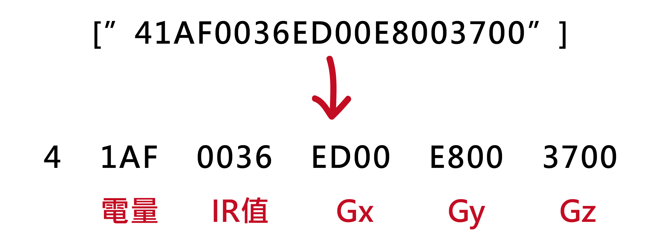 意思就是說小黑盤每0.01秒就會把包括電量、IR和G-Sensor的資料包在一起傳出來給我們。