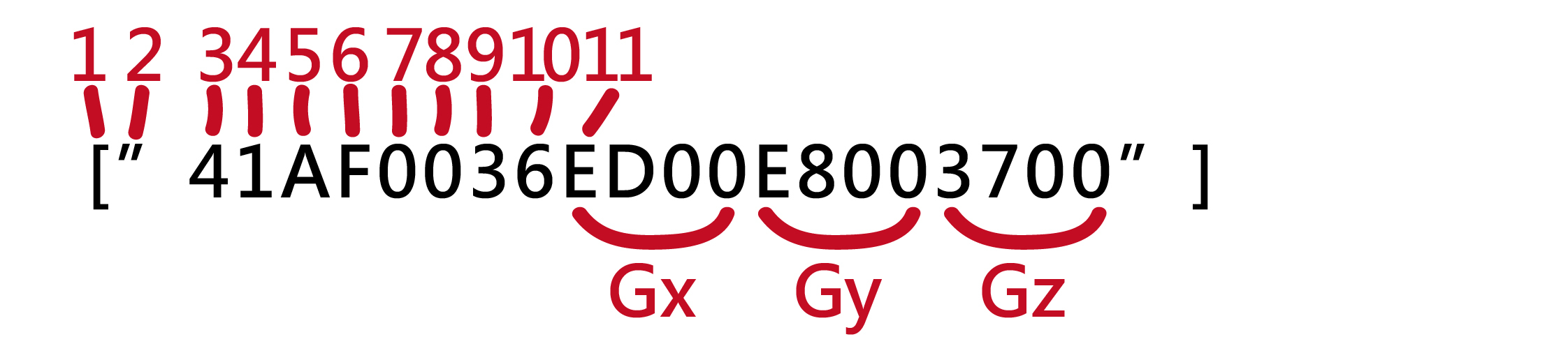 這裡「取”stringValues”」就是我們接收到的原始資料,包含16個英文字母和數字的一串文字,這裡假設是 [“41AF0036ED00E8003700”] 。