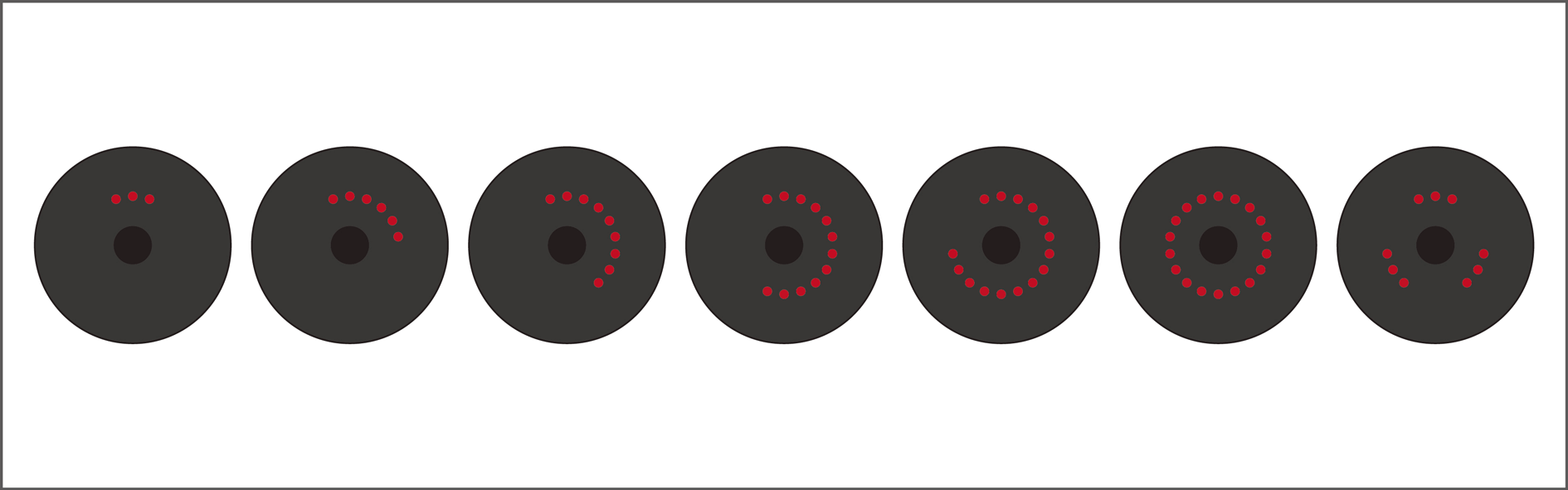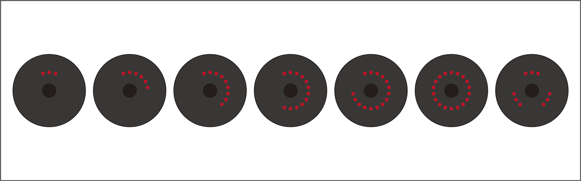 1. 1到7號小黑盤為基本Do到Si音階,8到12號小黑盤可以自己設定音階。