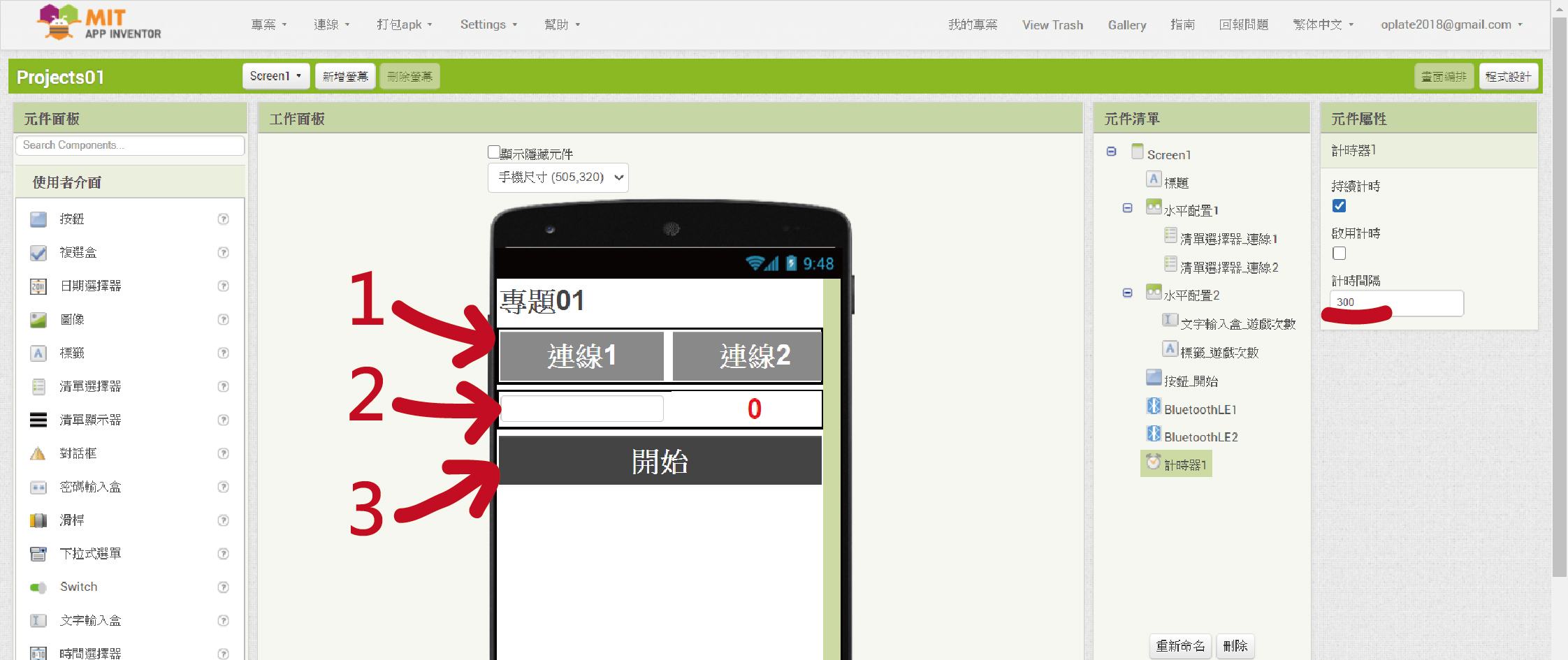 然後還要兩個「BLE擴充元件」和一個「計時器」。