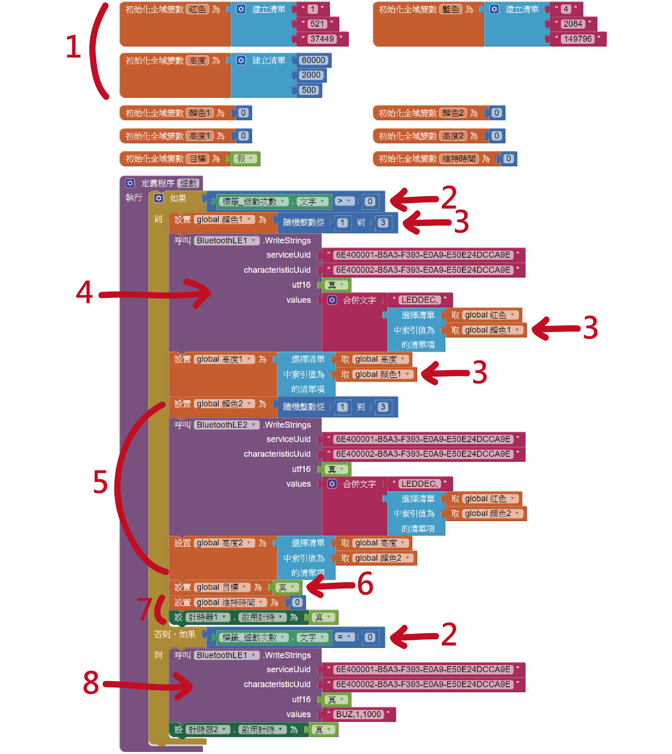 注意,這時不管變成藍色或紅色,都要保持相同的燈號,燈號是由變數「顏色1」決定。